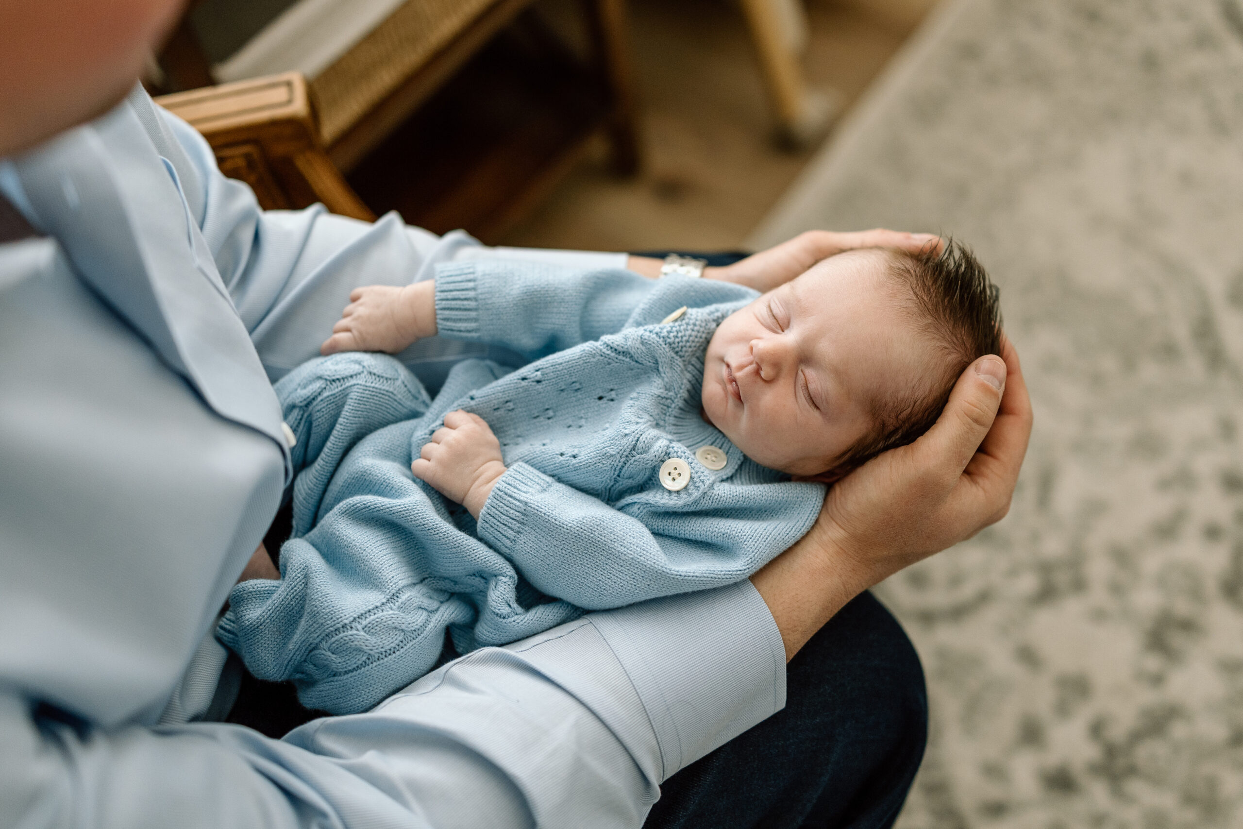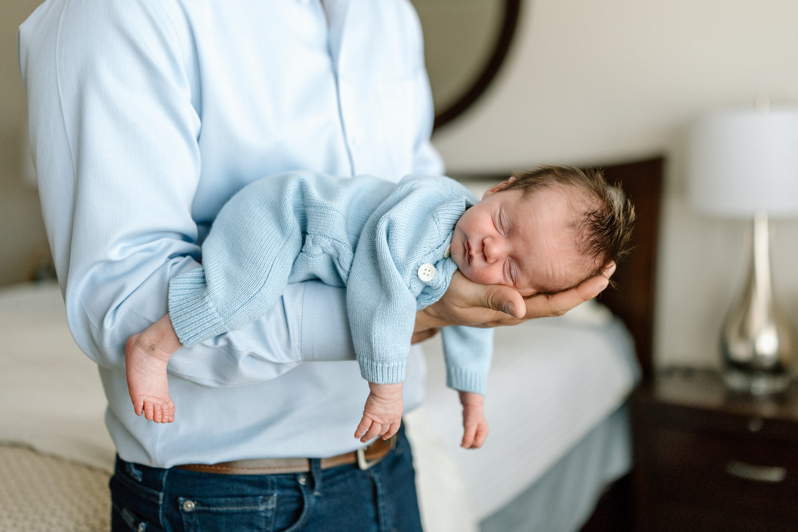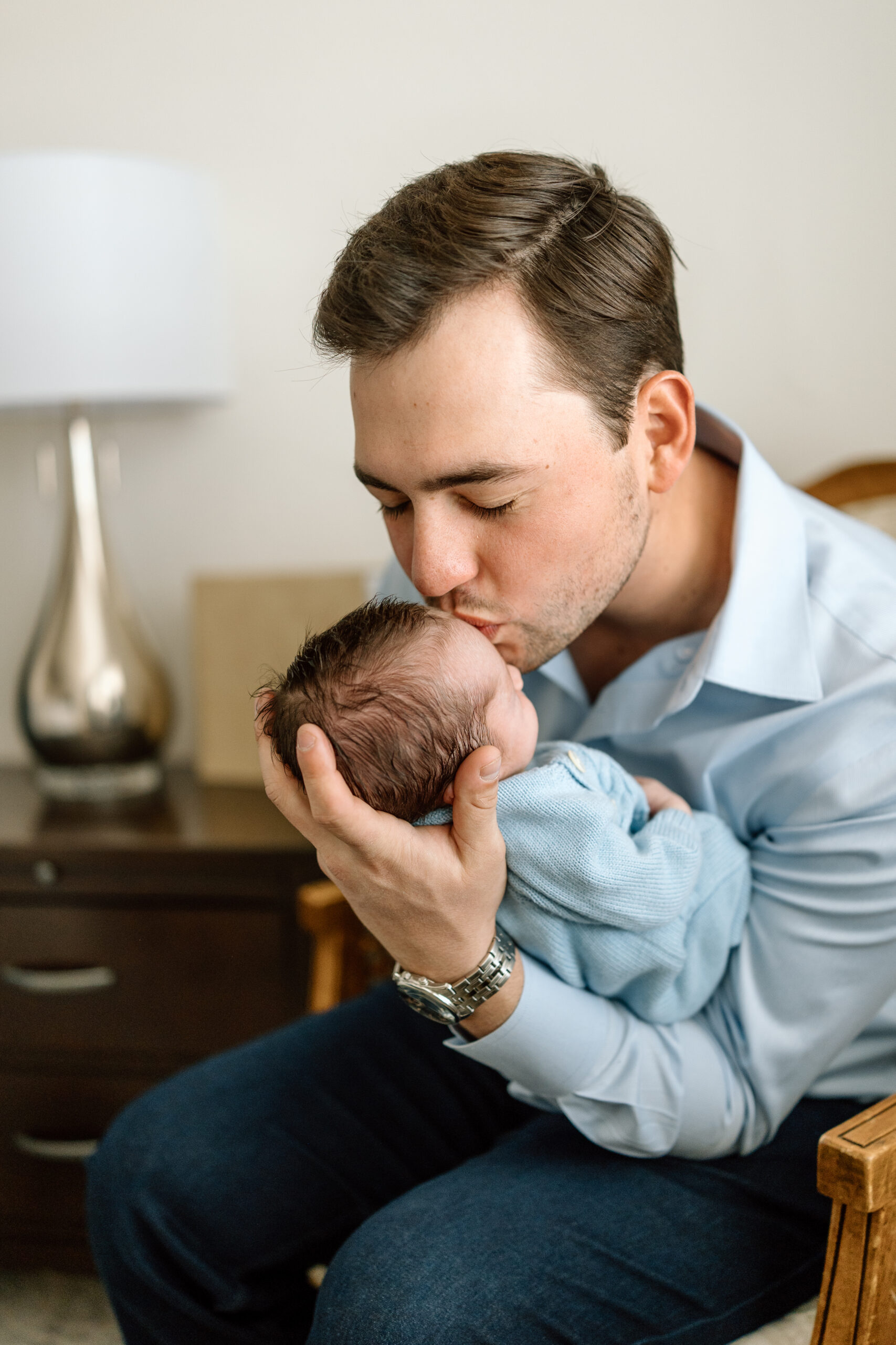 These lifestyle newborn photos are the perfect example of why I love in-home photography. There is something so much more meaningful about capturing a new family in the very space where their lives are changing – no stiff poses, no giant fuzzy hats, just pure connection.