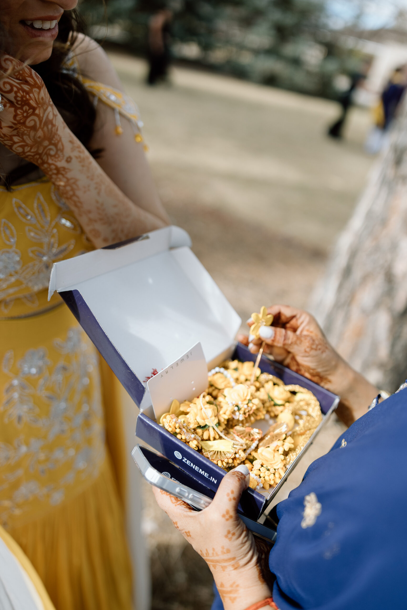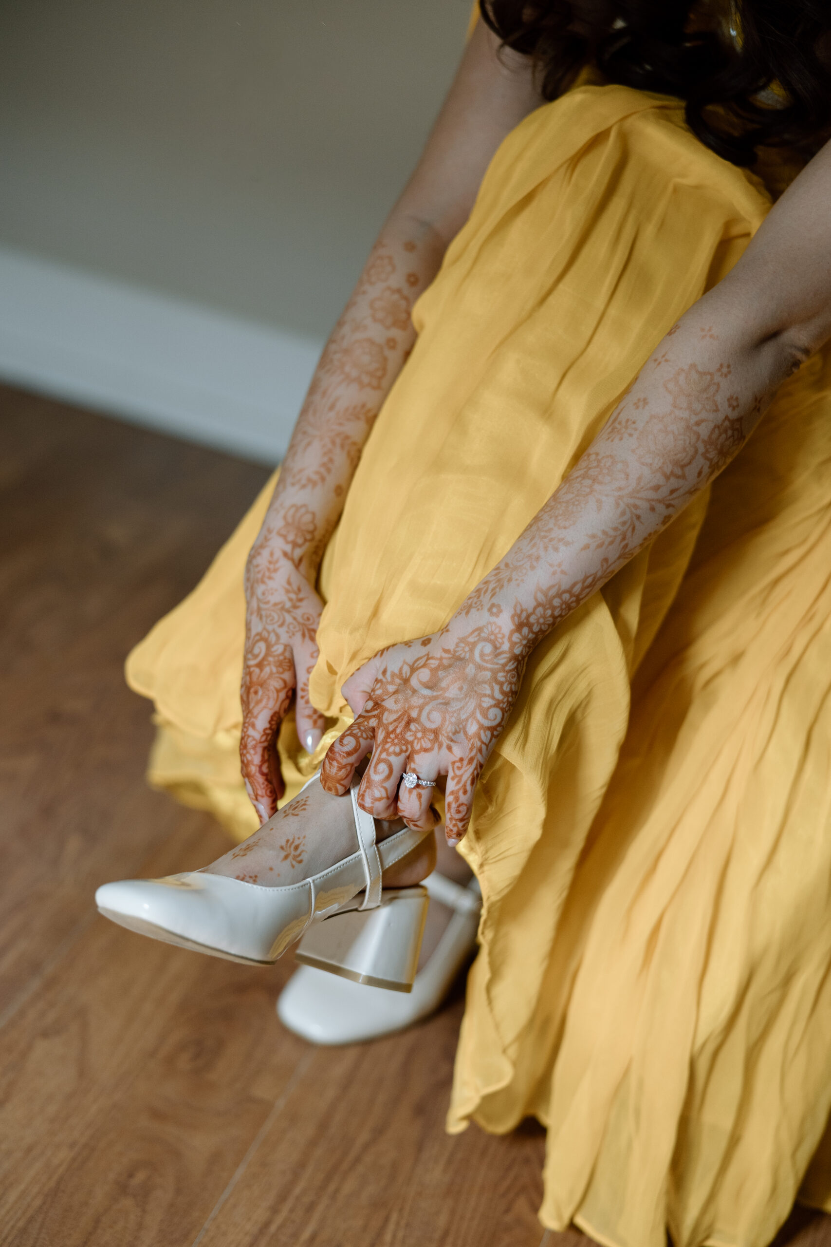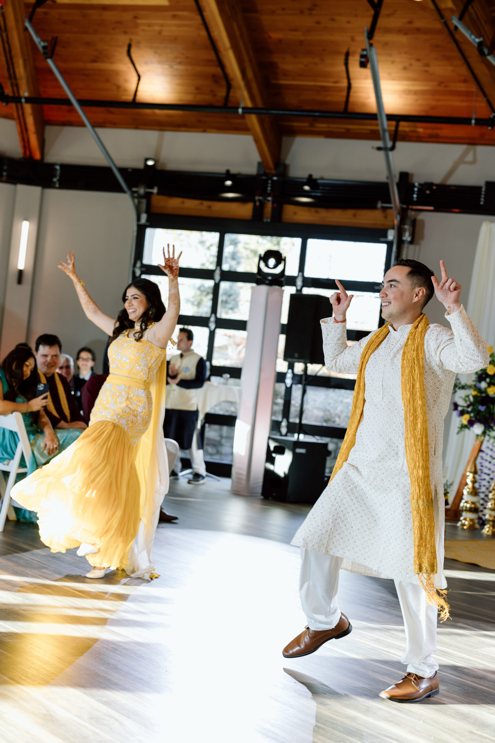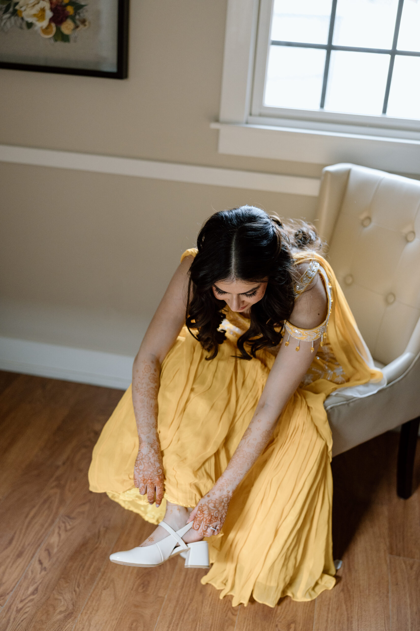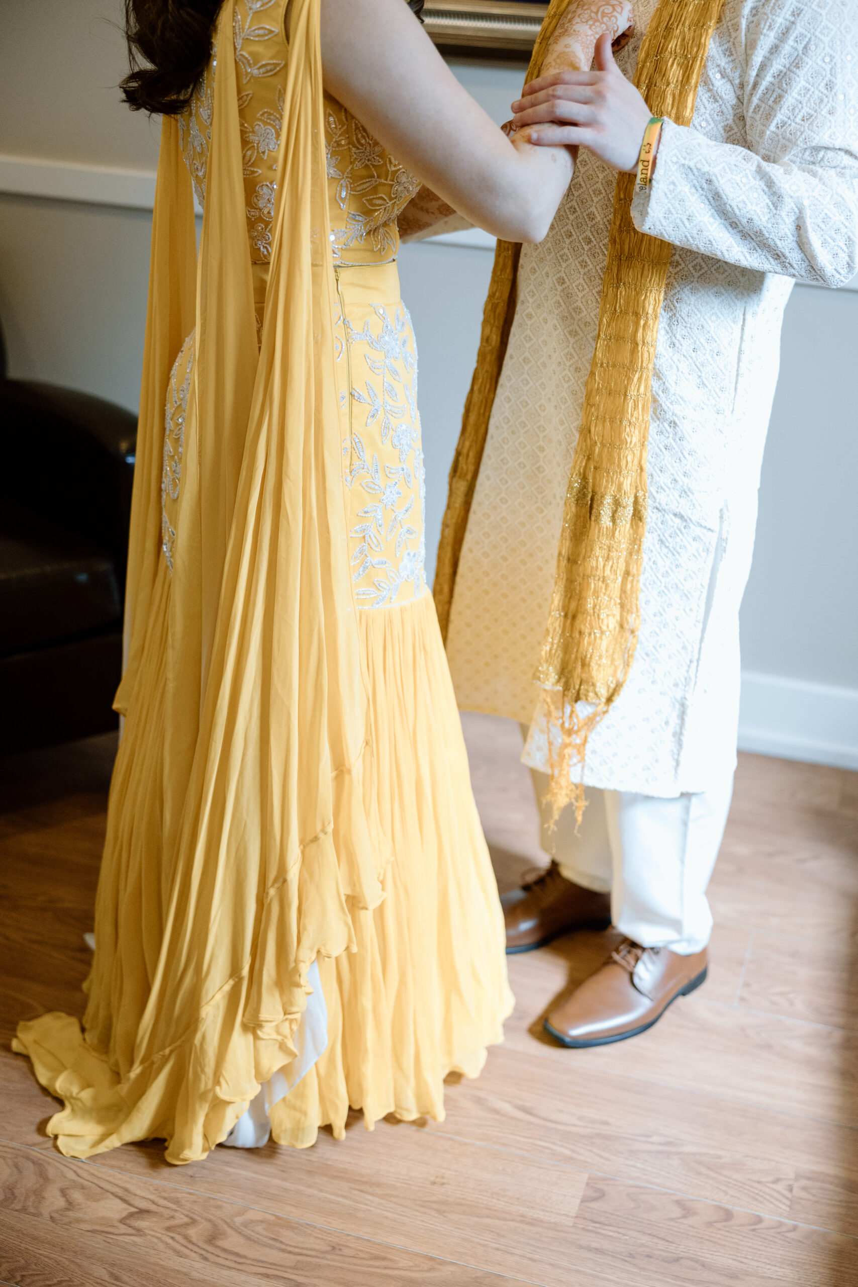 The Haldi ceremony was easily one of the most visually stunning parts of the entire weekend. For those unfamiliar, this is a traditional ritual where family and friends gather to apply a turmeric paste to the bride and groom. It’s a symbol of blessing and purification, and at this wedding, nobody held back! They were covered from head to toe, clothes and all! The sheer saturation of the yellow against the colorful attire was a photographer’s dream.
