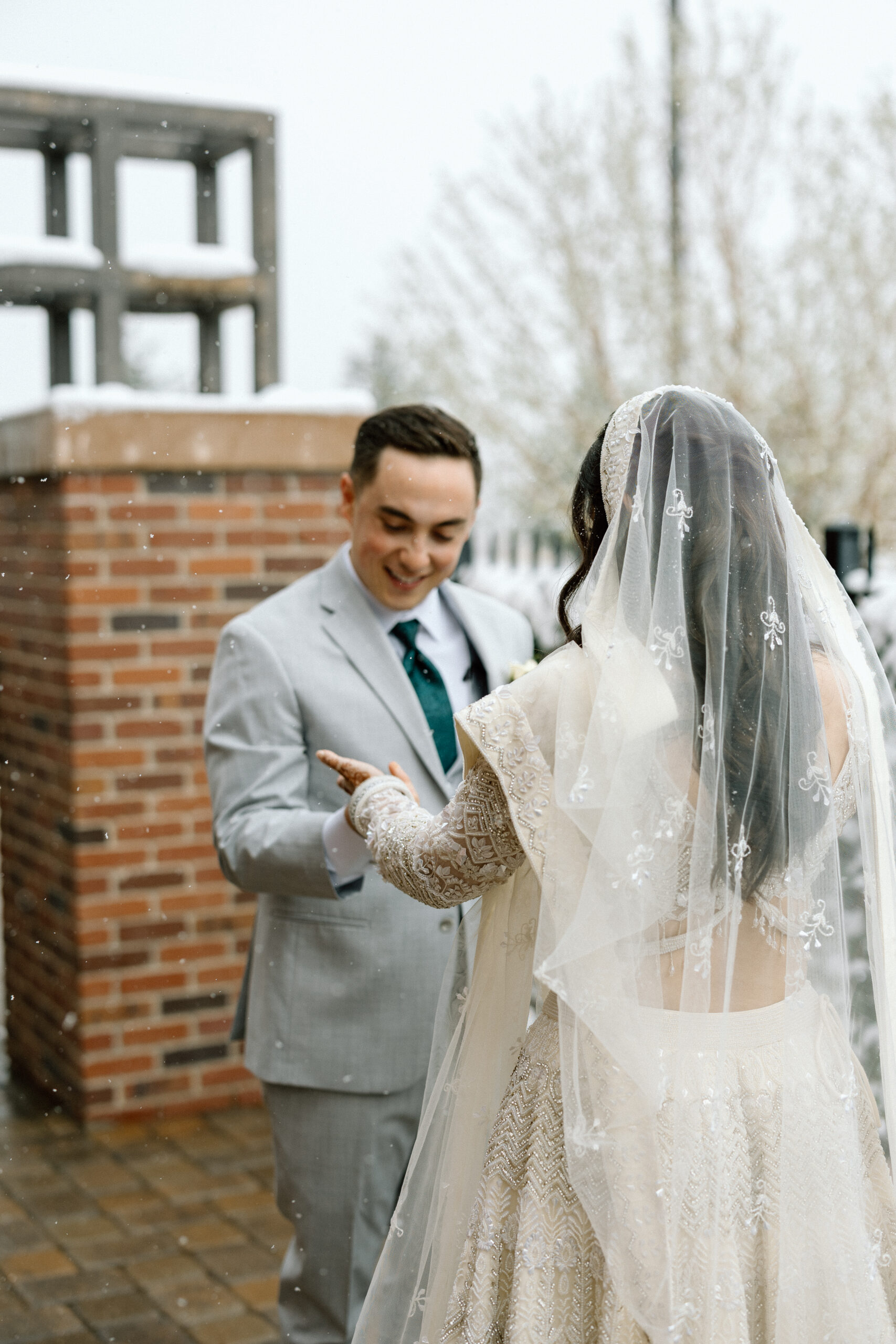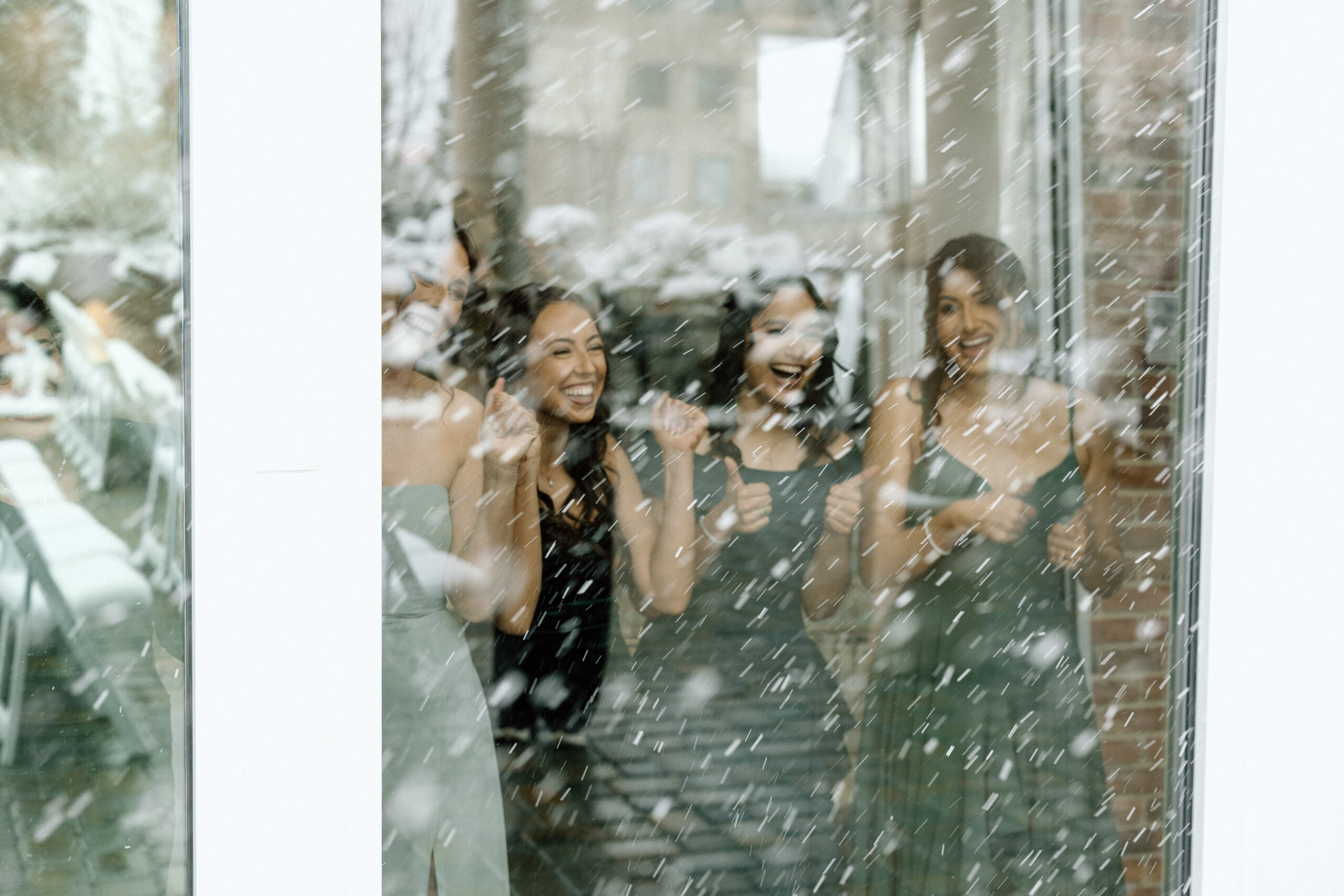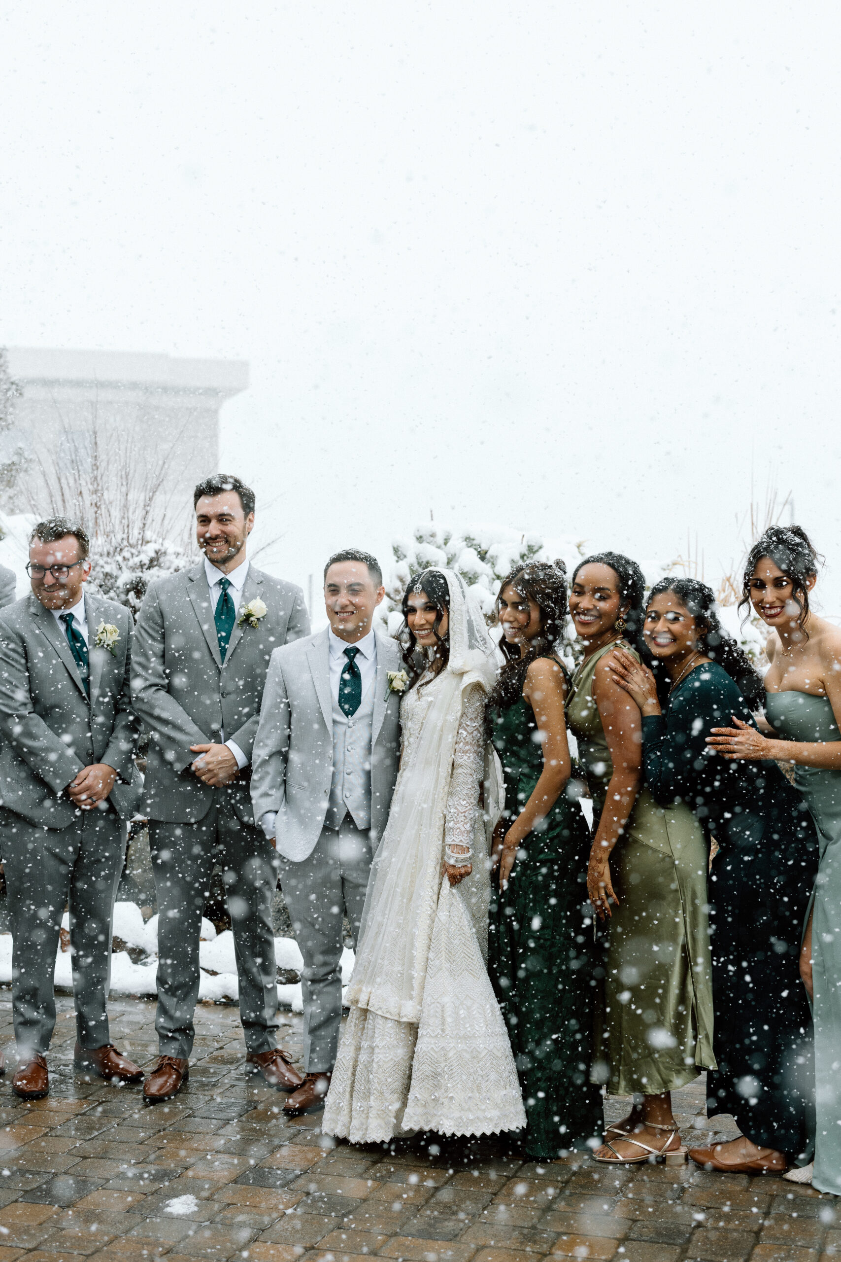 On the first day of the wedding, the air was mild and clear. By day two, the weather turned a complete corner. A full blizzard arrived just in time for the celebration! Huge snowflakes fell softly over Ashley Ridge, transforming the landscape into a winter wonderland. We couldn’t stay outside for long due to the cold. However, we stayed out just long enough to capture truly magical moments. It was so cool to see the drastic shift from warm tones and electric energy of the night before to the dreamy soft aura of the wedding day.