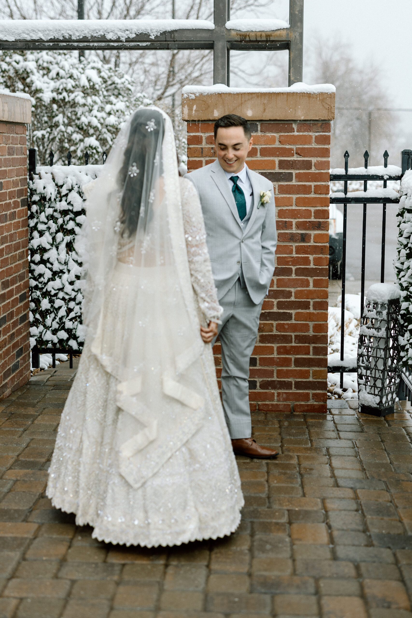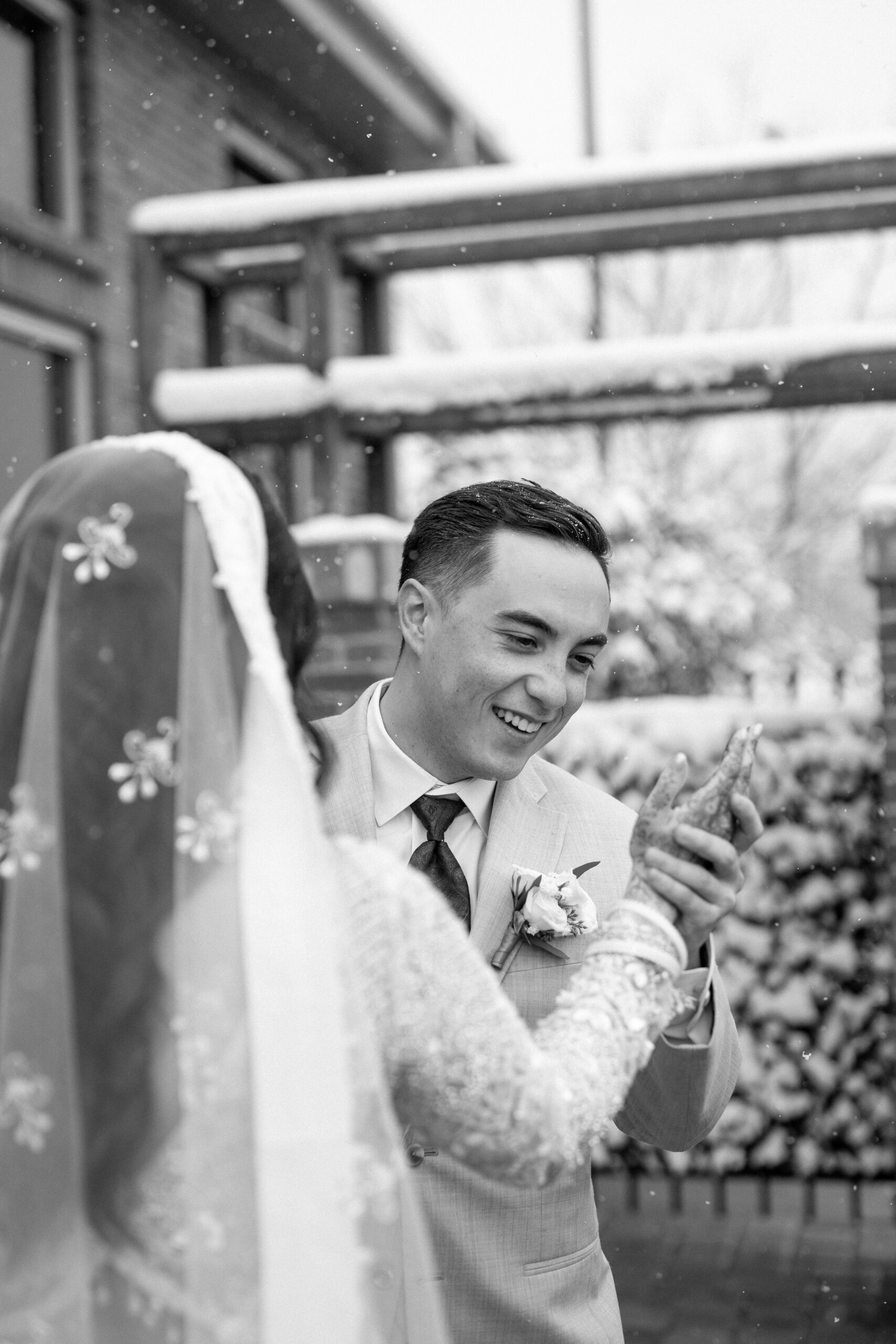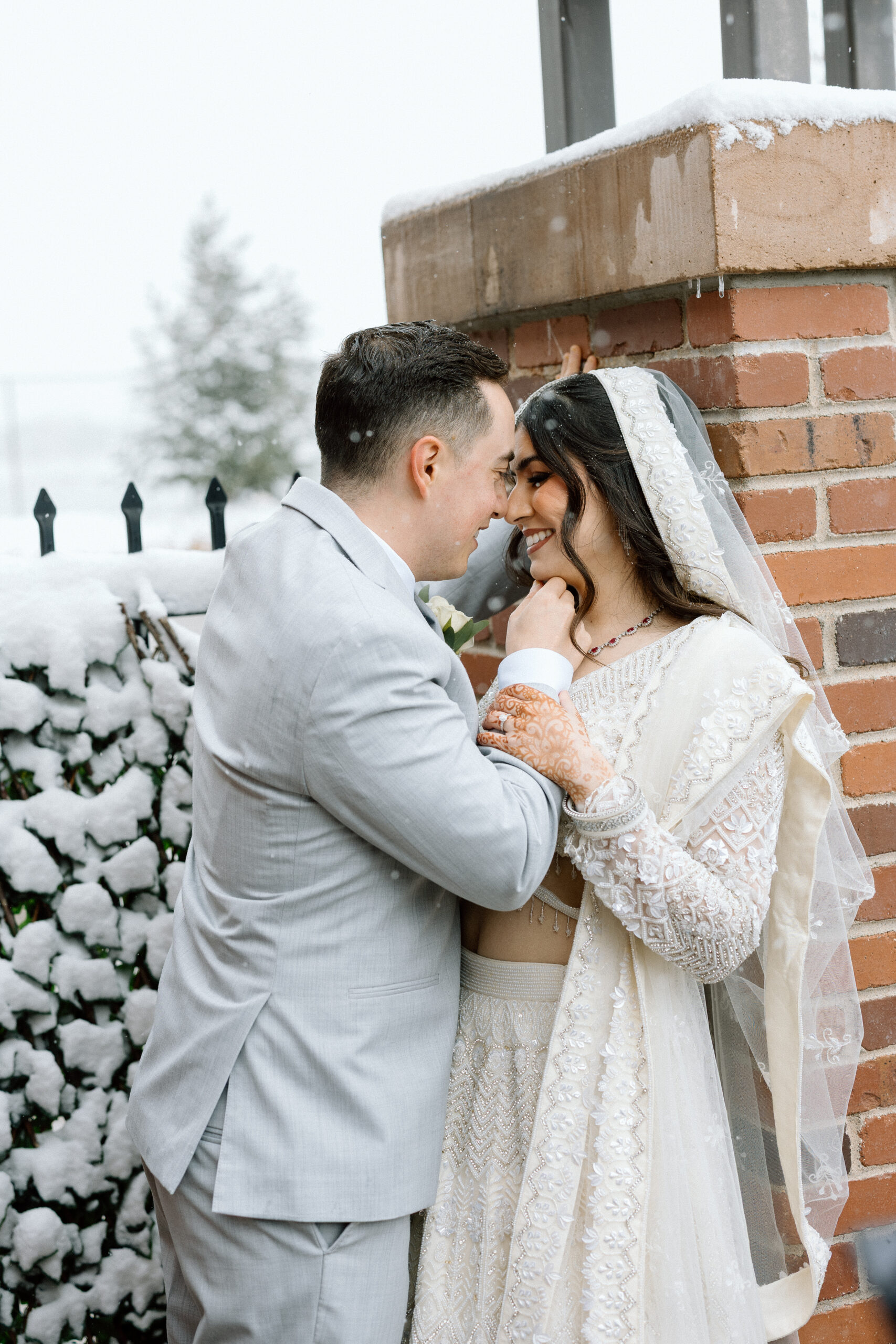 On the first day of the wedding, the air was mild and clear. By day two, the weather turned a complete corner. A full blizzard arrived just in time for the celebration! Huge snowflakes fell softly over Ashley Ridge, transforming the landscape into a winter wonderland. We couldn’t stay outside for long due to the cold. However, we stayed out just long enough to capture truly magical moments. It was so cool to see the drastic shift from warm tones and electric energy of the night before to the dreamy soft aura of the wedding day.