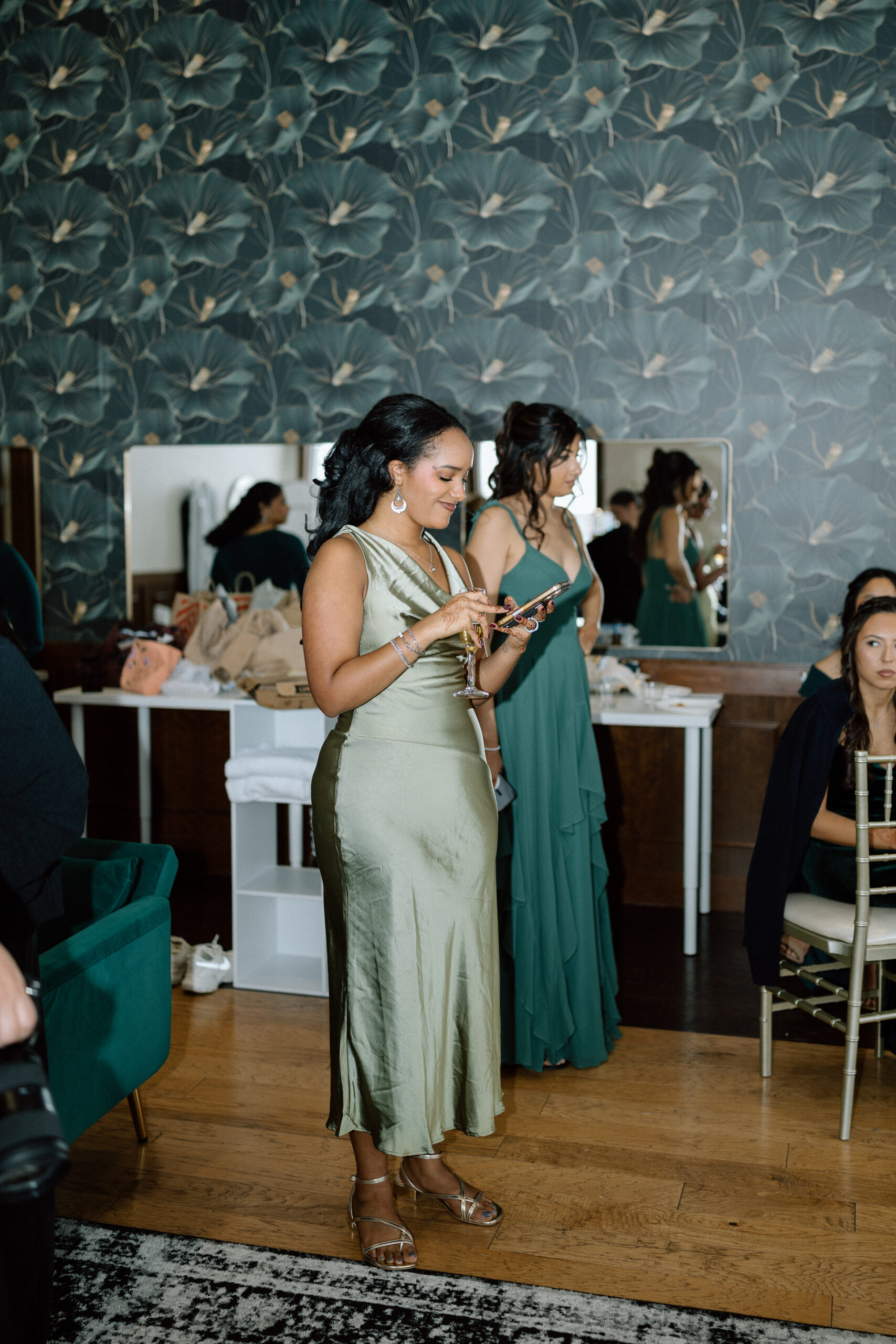 Beyond the artistic angles, there is a massive logistical win to having a second shooter during the wedding party photos. We all know the reality of a wedding day: as soon as it’s time for group portraits, someone from the wedding party inevitably vanishes to find a drink or a bathroom. While the lead photographer is setting up the next grouping and keeping the momentum going, I can act as the “coordinator” to hunt down that missing groomsman or organize the next set of family members. It keeps the energy high and the timeline on track, ensuring we get those beautiful portraits without the stress of a ticking clock.